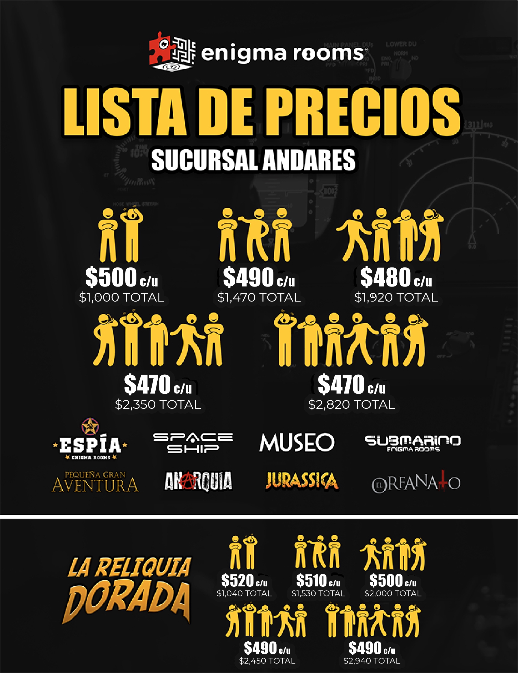 NO olvides enviarnos tu comprobante de pago y los datos de tu reservación al correo gdl@enigmarooms.com.mx